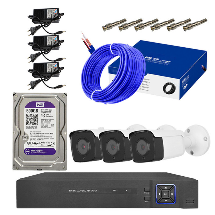 پکیج امنیتی ََAHD شامل سه دوربین بالت مداربسته AHD دو مگاپیکسلی (ضد آب و دارای دید در شب) مناسب محیط داخلی و فضای بیرون ، یک عدد دستگاه ضبط DVR چهار کانال و هارد 500 گیگ وسترن دیجیتال بنفش و سه عدد آداپتور 2آمپر و 15 متر کابل ترکیبی مغزی 0.7 مس (شامل کابل برق+RG) و 6عدد فیش BNC می باشد. این پکیج مناسب جهت استفاده در فروشگاهها ، منازل مسکونی و شرکتها و... میباشد و محدودیتی برای نصب ندارد. توجه داشته باشید برای نگهداری و ضبط تصاویر یک عدد هارد در پکیج قرار داده شده که قابلیت ماندگاری فیلم تا بیش از 8 روز را دارد. برنامه ی ضبط بر اساس حساسیت حرکت و یا بازه زمانی قابل تنطیم میباشد. این پکیج قابلیت تشخیص چهره و ثبت تصاویر را دارا میباشد. همچنین قابلیت دیگر این پکیج ، قابلیت هشدار تشخیص حرکت میباشد که بصورت پیغام به شما اعلام می نماید. ضمنا دستگاه استفاده شده در این پکیج دارای 4ورودی میکروفون برای ضبط صدا میباشد. این پکیج از نوع AHD است که یک عدد هارد دیسک داخلی تا ظرفیت 14 ترابایت را پشتیبانی می کند. کیفیت تصویر این محصول 1080P است. دوربین های موجود در این پکیج از نوع AHD بوده و این امکان را به شما می دهد که تصاویر با کیفیتی به صورت شبانه روز در اختیار داشته باشید. لنز دوربین ها 3 مگاپیکسلی و حسگر استفاده شده 2 مگاپیکسل است. این سیستم امنیتی شامل 15 متر کابل ترکیبی و فیش های مورد نیاز در آن میباشد. در این پک از 3 عدد آداپتور 2 آمپر با خروجی ثابت 2.2 آمپر جهت تامین برق دوربین ها استفاده شده است.دستگاه DVR دارای خروجی های VGA و HDMI و AV میباشد که میتواند بدون محدودیت به تمام تلویزیون ها و مانیتورها متصل شود و خروجی تصویر داشته باشد همچنین این دستگاه از نرم افزار Android و IOS پشتیبانی میکند تا بتوانید تصاویر دوربین ها را بدون محدودیت در زمان و مکان روی موبایلهای خود داشته باشید (هم تصاویر بصورت آنلاین و هم تصاویر ضبط شده).