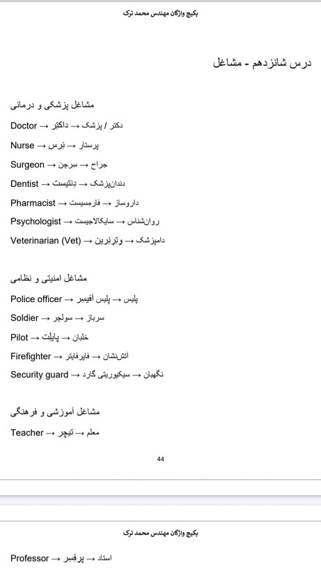 پکیج لغات زبان به صورت دسته بندی شده با تلفظ