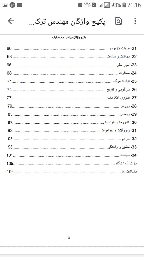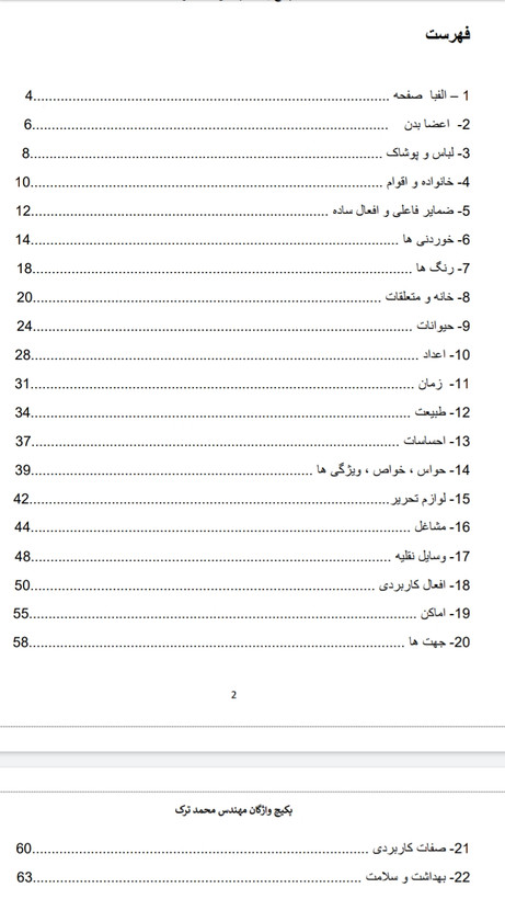 این محصول اولین پکیج واژگان کاربردی زبان انگلیسی هست که به صورت کاملا دسته بندی شده ارائه میشود . کسانی که میخواهند زبان انگلیسی را فرا بگیرند به یک منبع از واژگان نیاز دارند که پرت نباشد بلکه لغات را مرحله به مرحله و طبقه بندی شده آموزش دهد . این محصول تمام کلماتی که باید بدانید را در ۳۴ بخش اصلی ارائه میدهد . این جزوه همچون ساختار یک کتاب آموزشی ، دارای فهرست ، شماره گذاری ، تلفظ دقیق آمریکن و ترجمه فارسی بوده که حدود ۱۰۶ صحفه میشود و شما میتوانید هم از روی تلفن همراه ، تبلت و رایانه مطالعه کنید یا پرینت بگیرید و از روی کاغذ بهره مند شوید . دانش آموزان ، زبان آموزان در هر سطحی ، بزرگسالان ، آموزشگاه های زبان و معلمان عزیز میتوانند از نسخه دیجیتال یا پرینت فایل استفاده کنند . با اسکن بارکد روی محصول میتوانید وارد کانال آموزشی شوید و تمام بخش های جزوه را با مثال های صوتی و تصویری ، آهنگ و فیلم فرا بگیرید که در فهم و یادگیری بهتر قطعا موثر خواهد بود .