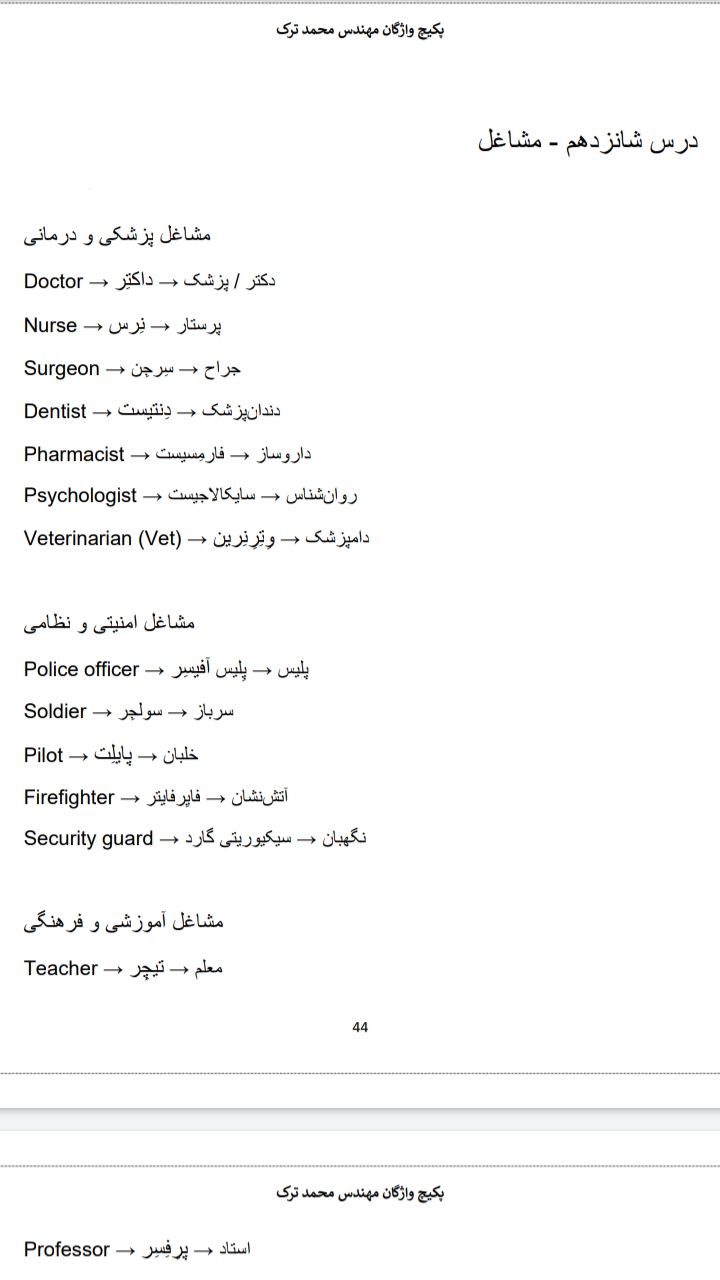 پکیج لغات زبان به صورت دسته بندی شده با تلفظ