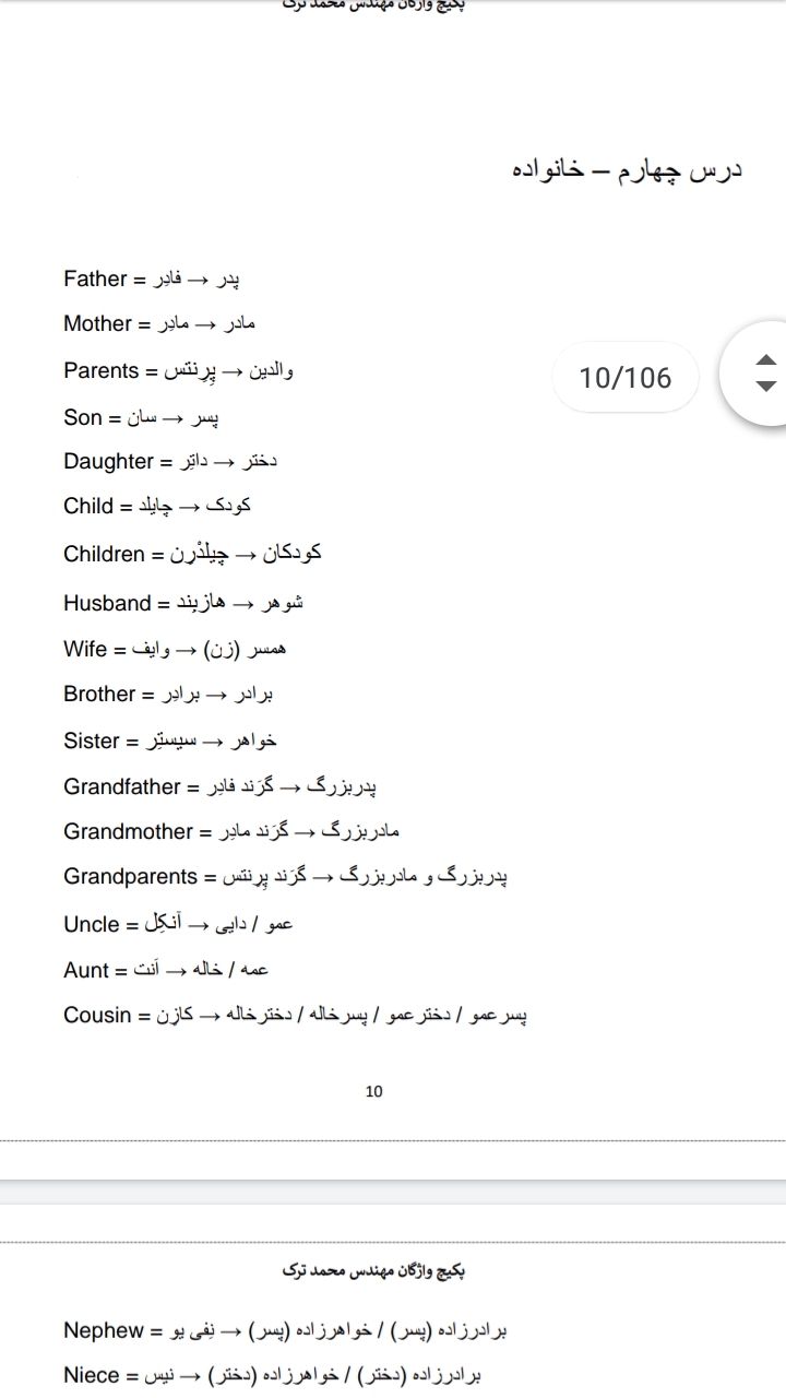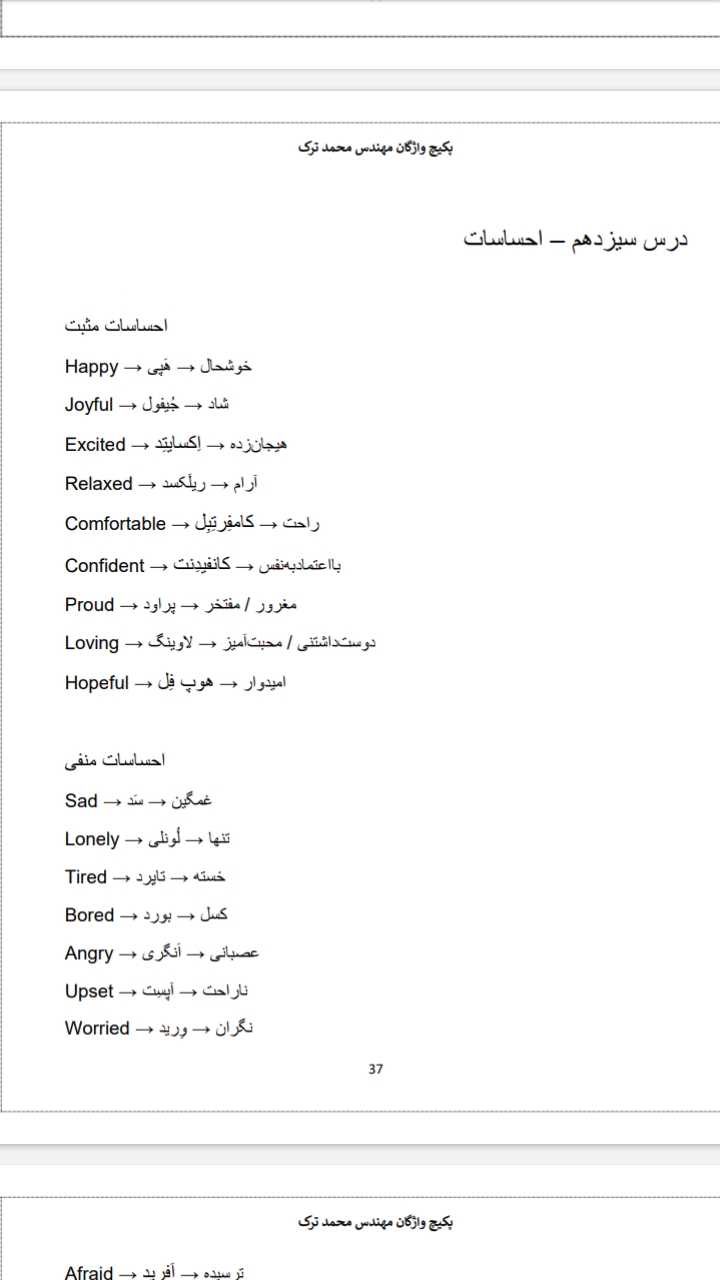 این محصول اولین پکیج واژگان کاربردی زبان انگلیسی هست که به صورت کاملا دسته بندی شده ارائه میشود . کسانی که میخواهند زبان انگلیسی را فرا بگیرند به یک منبع از واژگان نیاز دارند که پرت نباشد بلکه لغات را مرحله به مرحله و طبقه بندی شده آموزش دهد . این محصول تمام کلماتی که باید بدانید را در ۳۴ بخش اصلی ارائه میدهد . این جزوه همچون ساختار یک کتاب آموزشی ، دارای فهرست ، شماره گذاری ، تلفظ دقیق آمریکن و ترجمه فارسی بوده که حدود ۱۰۶ صحفه میشود و شما میتوانید هم از روی تلفن همراه ، تبلت و رایانه مطالعه کنید یا پرینت بگیرید و از روی کاغذ بهره مند شوید . دانش آموزان ، زبان آموزان در هر سطحی ، بزرگسالان ، آموزشگاه های زبان و معلمان عزیز میتوانند از نسخه دیجیتال یا پرینت فایل استفاده کنند . با اسکن بارکد روی محصول میتوانید وارد کانال آموزشی شوید و تمام بخش های جزوه را با مثال های صوتی و تصویری ، آهنگ و فیلم فرا بگیرید که در فهم و یادگیری بهتر قطعا موثر خواهد بود .