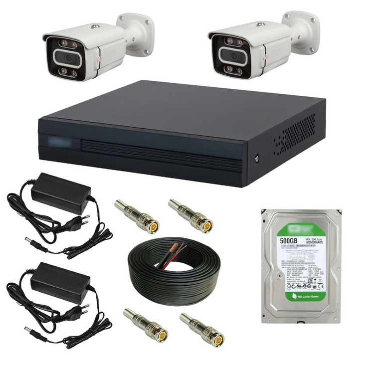پکیج فوق یک پکیج کامل دوربین مداربسته میباشد. پکیج فوق دارای 2 عدد دوربین مداربسته ضد آب 2 مگاپیکسل دارای دید درشب رنگی وارم لایت با لنز 3.6 میلیمتر میباشد.یک عدد دستگاه ضبط 4 کاناله دارای نرم افزار انتقال تصویر رایگان روی گوشی میباشد.دارای 20 متر کابل ترکیبی کواکسیال و برق - دارای اتصالات لازم جهت نصب - دارای 2 عدد آداپتور 2 آمپر - دارای 1 عدد هارد 500 گیگ میباشد.