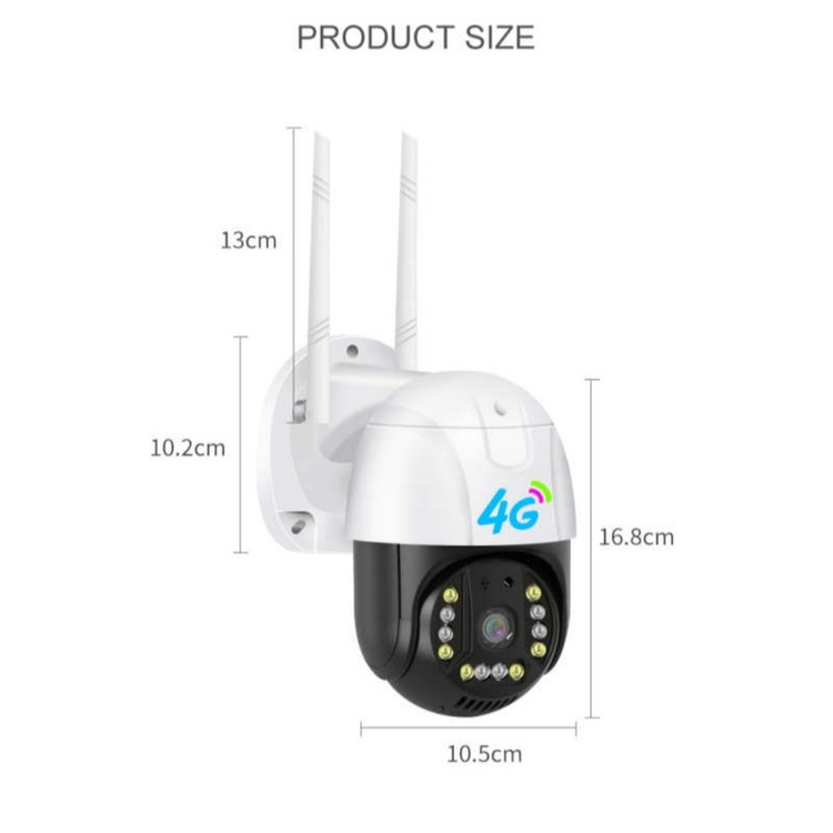 دوربین مداربسته تحت شبکه 4g کیفیت تصویر 2 مگاپیکسل full HD و با تمام سیمکارتها سازگاری دارد و قابلیت چرخش عمودی و افقی و کنترل ار طریق نرم افزار را داراست. دارای 6 عدد ال ای دی سفید و 6 عدد ال ای دی مادون قرمز و قابلیت دید در شب رنگی حدود 35 متر رنگی و سیاه و سفید بسته به محیط متفاوت است و قابلیت تنظیم ال ای دی از طریق نرم افزار در سه حالت خاموش و روشن و حالت اتوماتیک که در حالت خودکار، نور مادون قرمز پس از سوئیچ IR-cut به دید در شب خودکار روشن می شود، به طور هوشمند می تواندبدن انسان را شناسایی کرده و نور سفید را هوشمندانه روشن/خاموش کند.این دوربین دارای قابلیت مکالمه دو طرفه و پشتیبانی از کارت حافظه تا 128 گیگ را داراست. در دمای 10- تا 50+ و همینطور رطوبت 95 درصد میتوان از این دوربین استفاده کرد. از دیگر ویژگی های این دوربین تشخیص حرکت،ارسال آلارم،مکالمه دو طرفه،پخش آژیر،دنبال کننده سوژه،ضد آب،وای فای داخلی،مشاهده آنلاین تصویر است. این دوربین دارای زوم دیجیتال و سازگار با اندروید و ios و ویندوز میباشد.
