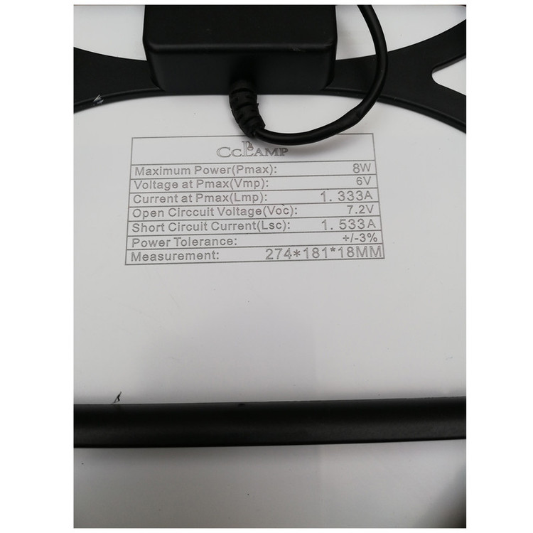 پنل سولار جهت تولید جریان الکتریکی از انرژی خورشیدی مورد استفاده قرار می گیرد. پنل 8 وات حاضر جهت استفاده های محدود مانند شارژ تلفن همراه و موارد این چنینی بسار مناسب می باشد. راندمان این پنل 16.5 درصد و از نوع پنل های پلی کریستال میباشد. همچنین نوع شارژ این پنل خورشیدی به صورت شارژ سریع (fast charge) می باشد. توان انرژی الکتریکی تولید شده در این پنل 8 وات است که می توان با جریان ماکزیمم 1.333 آمپر تولید شده توسط آن موبایل هوشمند و یا تبلت خود را به راحتی شارژ کرد.