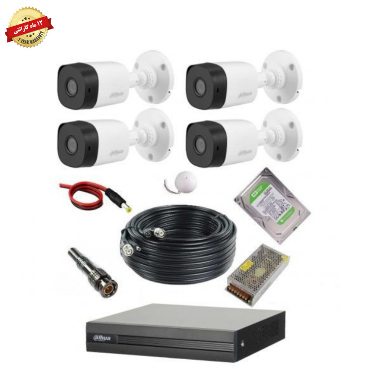 پکیج 4 دوربین داهوا فوق شامل 4 عدد دوربین دیواری پلاستیکی مدل HAC-B1A21P دوربین ها دارای زاویه دید 106درجه و دید در شب بوده و تا 20 متر مربع را در شب پوشش میدهد . یک عدد دستگاه 4 کانال داهوا مدل XVR-1B04 که قابلیت اتصال 4 عدد دوربین HD و 1 عدد دوربین شبکه (IP CAMERA) را دارد. و ساپورت دوربین و ضبط تا کیفیت 2 مگاپیکسل را دارد و علاوه بر ساپورت دوربین های سی وی آر قابلیت اتصال دوربین انالوگ، TVI ،CVI ،AHD را نیز دارد. این دستگاه دارای یک عدد ورودی صدا و یک عدد خروجی صدا، خروجی HDMI ،VGA و AV ، فرمت ضبط H264، قابلیت ضبط حساس به حرکت، پشتیبانی از سرویس انتقال تصویر P2P نیز میباشد . این پکیج دارای 1 عدد هارد 1 ترابایت جهت ذخیره سازی تصاویر، 1 عدد برد صدا جهت ضبط صدا، 1 عدد پاور 12 ولت 10 امپر جهت تغذیه دوربین ها، 50 متر کابل ترکیبی (برق + تصویر)، 8 عدد فیش BNC و 4 عدد فیش اداپتوری نیز میباشد .