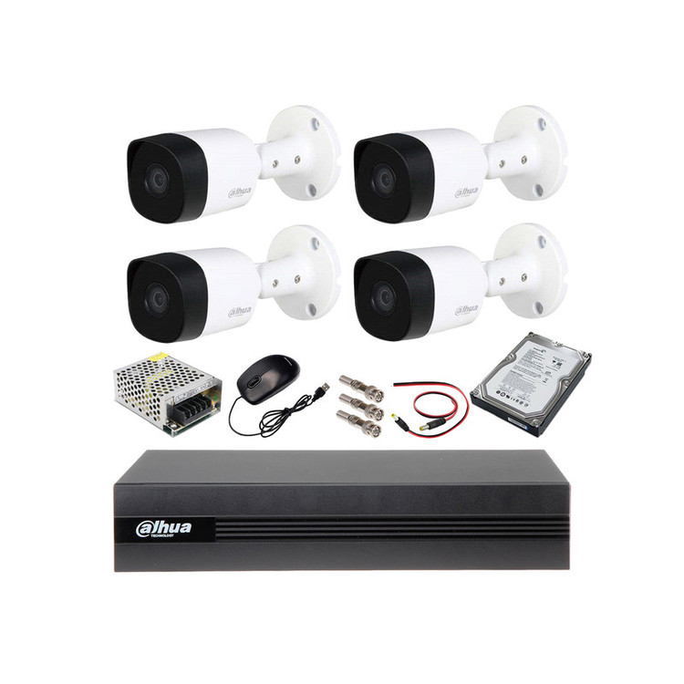این پکیج شامل چهار عدد دوربین مداربسته داهوا (dahua) با کیفیت تصویر 2 مگاپیکسل می باشد. این مدل دوربین های مداربسته داهوا دارای دید در شب با برد 30 متر هستند و جنس بدنه آن ها نیز ضدآب است. این پکیج دوربین مداربسته شامل یک عدد دستگاه DVR چهار کانال به همراه یک عدد هارد 500 گیگ قابل ارتقا ، آداپتور ، فیش BNC ، موس و فیش آداپتوری می باشد. این پکیج دوربین مداربسته یک کجموعه کامل سیستم نظارتی است و با وجود آن به تجهیزات دیگری نیاز نخواهید داشت.