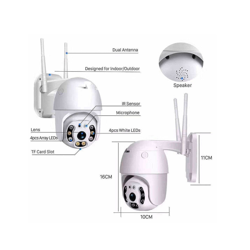 دوربین مداربسته مینی اسپید تحت شبکه بی سیم مدل XMEYE PTZ با قابلیت چرخش در جهت افقی تا 360 درجه و چرخش در جهت عمودی تا 90 درجه با قابلیت پشتیبانی از حافظه کارت حافظه 128G Micro SD ضد آب IP66 که حتی در هوای بد با محیط های خارجی سازگار است، همچنین دارای قابلیت صدای دو طرفه می باشد. این دستگاه از نظر دریافت تصاویر ، ذخیره تصاویر روی کارت حافظه و انتقال صدا و تصویر همانند دوربین های چرخشی دیگر بوده با کیفیت تصویر بی نظیر آن که با سنسور 2 مگا پیکسل دارد. یکی دیگر از قابلیت های این دوربین وصل شدن به صورت وایرلس به مودم می باشد و میتوان تصاویر ضبط شده و زنده را به همراه صدا و بدون نیاز به هیچ گونه لوازم جانبی به تمام نقاط دنیا ارسال کرد. از قابلیت های مهم این دوربین : ضدآب بودن، قابلیت نصب به NVR وتوانایی دیدن تصاویر و صدا ضبط شده به صورت همزمان در نرم افزار است . نرم افزار مورد نیاز این دوربین XMEYE می باشد.