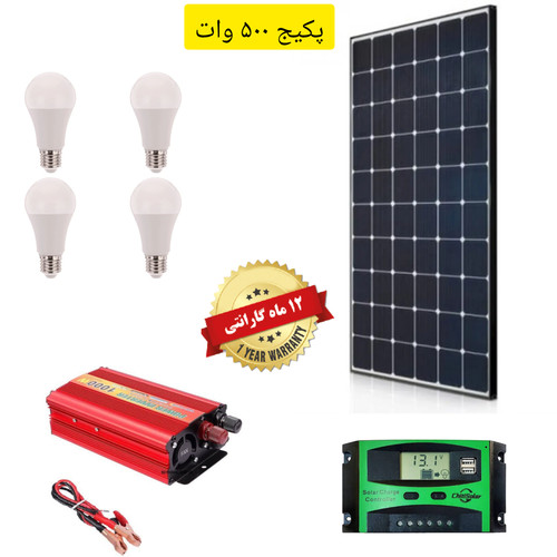 پکیج برق خورشیدی ۵۰۰ وات با تبدیل برق شهری