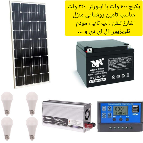 پکیج خورشیدی اقتصادی 600 وات با خروجی ۲۲۰ ولت
