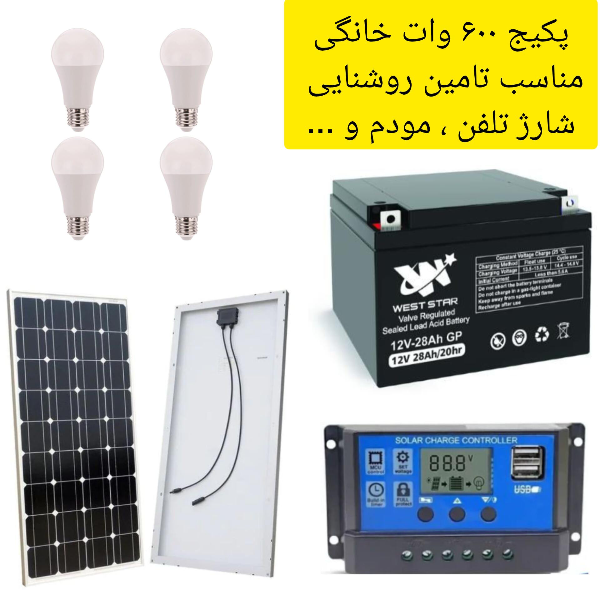 پکیج خورشیدی اقتصادی 600 وات با خروجی ۲۲۰ ولت